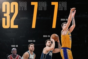 东契奇本赛季,场均33.5分7.7篮板8.7助攻。