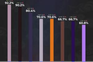 沙皇:70.6%,12场选用,24场禁用
