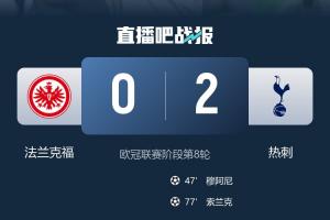 体育资讯01月29日讯 欧冠联赛阶段第8轮战罢,热刺2-0力克法兰克福,以联赛阶段第4的成绩直通15强。球队在本届欧冠联赛阶段8轮5胜2平1负。