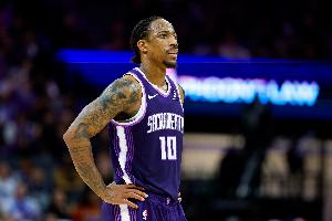 上半场,国王球星德罗赞状态出色,两个单节得分均上双,在17分钟的时间里,投篮11中7,三分球1中1,罚球8中6,砍下21分2篮板1助攻的数据。