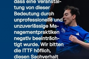 “没有任何一名选手收到接近合同承诺金额的出场费,有些队友连承诺报销的机票费用都未兑现,全程自掏腰包参赛。”德国名将奥恰洛夫透露,所有受影响选手的实际到账金额均不足约定数额的10%。据了解,包括奥恰洛夫、巴西选手雨果·卡尔德拉诺、韩国选手张禹珍在内的多位名将,已联合向国际乒乓球联合会(ITTF)及世界乒乓球职业大联盟(WTT)发出公开信,正式指控以尼尔斯·奥特斯塔德为代表的赛事运营方存在系统性违约行为。