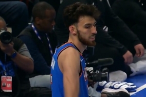 这挺亏!科尔·安东尼垃圾时间崴脚受伤 光脚走回更衣室