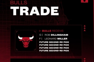 交易详情为:公牛送出道苏姆和菲利普斯,从森林狼换来迪林厄姆、伦纳德·米勒、4个次轮签。