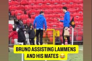 体育资讯02月08日讯 英超第25轮,曼联2-0战胜热刺,本场比赛B费打入一球。赛后,拉门斯找到B费,让他帮自己和朋友拍照。