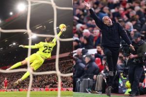 体育资讯02月09日讯 英超第25轮,曼城2-1逆转绝杀利物浦。比赛补时阶段,麦卡利斯特的凌空远射发生折射变线,多纳鲁马贡献神扑将球托出,力保球门不失!