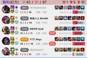 体育资讯2月13日讯 根据韩服排位统计小程序显示,Peyz昨日在韩服排位中偶遇GEN上中野,Peyz操刀卡莎直接杀穿GEN上中野带队取胜!