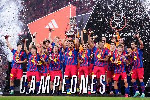体育资讯01月14日讯 据《每日体育报》报道,本周国王杯巴萨客战桑坦德竞技的比赛,桑坦德竞技将在主场列队致敬巴萨夺得西超杯冠军。