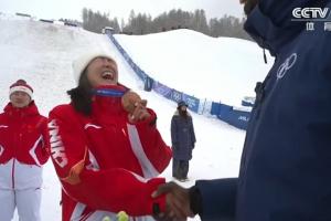 赛后颁奖仪式上,徐梦桃笑着用英语向颁奖嘉宾调侃:这是我的第一枚奥运会铜牌。