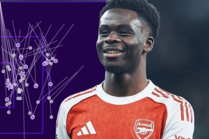 数据统计显示,萨卡是本赛季英超同期唯一达成成功过人+创造机会均40+的球员(均为46次)。