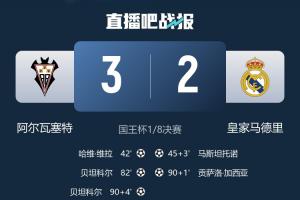 体育资讯01月15日讯 国王杯1/8决赛,阿尔瓦塞特爆冷3-2绝杀皇马。