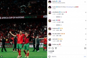 皇马中场布拉欣·迪亚斯在本场比赛首发出战,他也在赛后通过社媒晒出和队长阿什拉夫的合照,并配文:“晋级决赛!”
