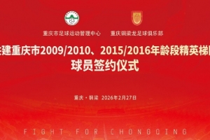 相信在双方的携手努力下,在社会各界的关心支持下,重庆青训事业将迎来新的发展机遇,更多本土足球苗子将在专业的培养下茁壮成长,成为重庆足球的未来与希望,为重庆足球事业高质量可持续发展筑牢根基、续写新篇,为体育强国建设贡献重庆力量。