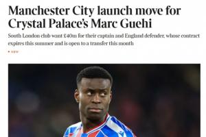 报道称,曼城已经采取行动,而格伊也愿意在冬窗离开球队。曼城已经与水晶宫展开谈判,并且即将与格伊就个人条款达成一致。水晶宫希望能够收到4000万镑的转会费。而格伊与水晶宫的合同仅剩半年。