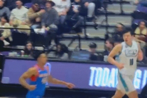 GIF-史密斯突破迎着杨瀚森的扑防暴扣~!!!