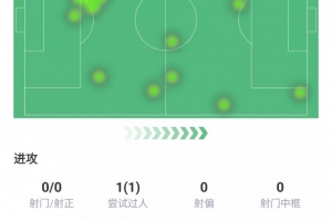 触球22次、传球12次、关键传球1次、传球成功率83.3%、传中1次、长传1次成功率100%