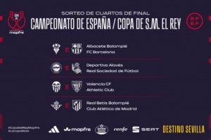 体育资讯1月19日讯 本赛季国王杯1/4决赛抽签结果出炉,阿尔瓦塞特对阵巴萨,贝蒂斯对阵马竞。