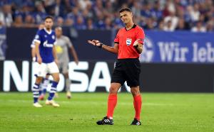当主裁判前往监视器时,可以听到他说:“大家都坐好,让我工作。你们得让我和VAR好好工作,在这种情况下不行。”